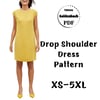 Digital download PDF sewing pattern for drop shoulder mini dress. Women dress with short dolman sleeves for everyday wear.