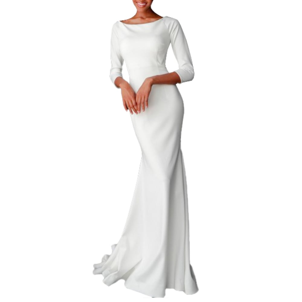 Digital download pattern for modest wedding dress with 3/4 raglan sleeves, boat neckline and nice 10" / 25 cm train.