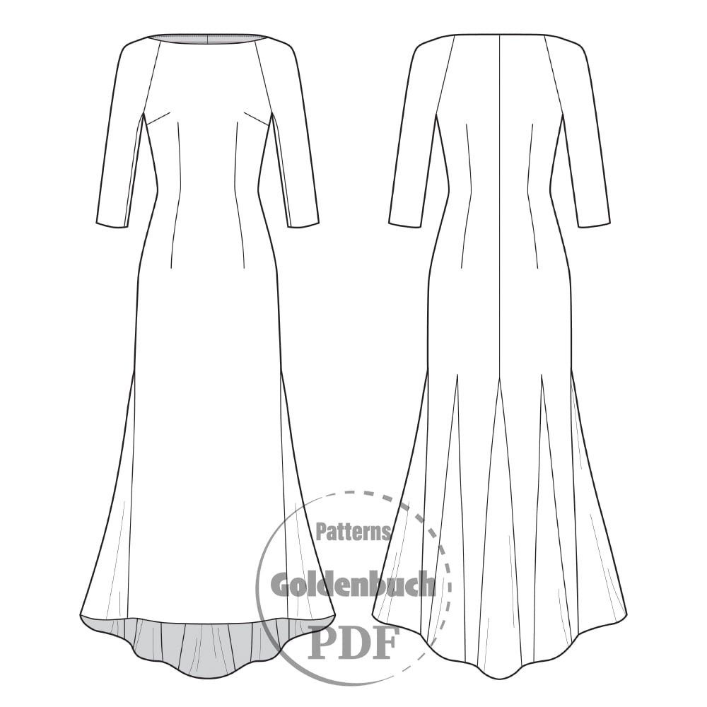 Modest Wedding Dress with Train PDF Sewing Pattern Digital Download File for Projector A0 A4 Letter