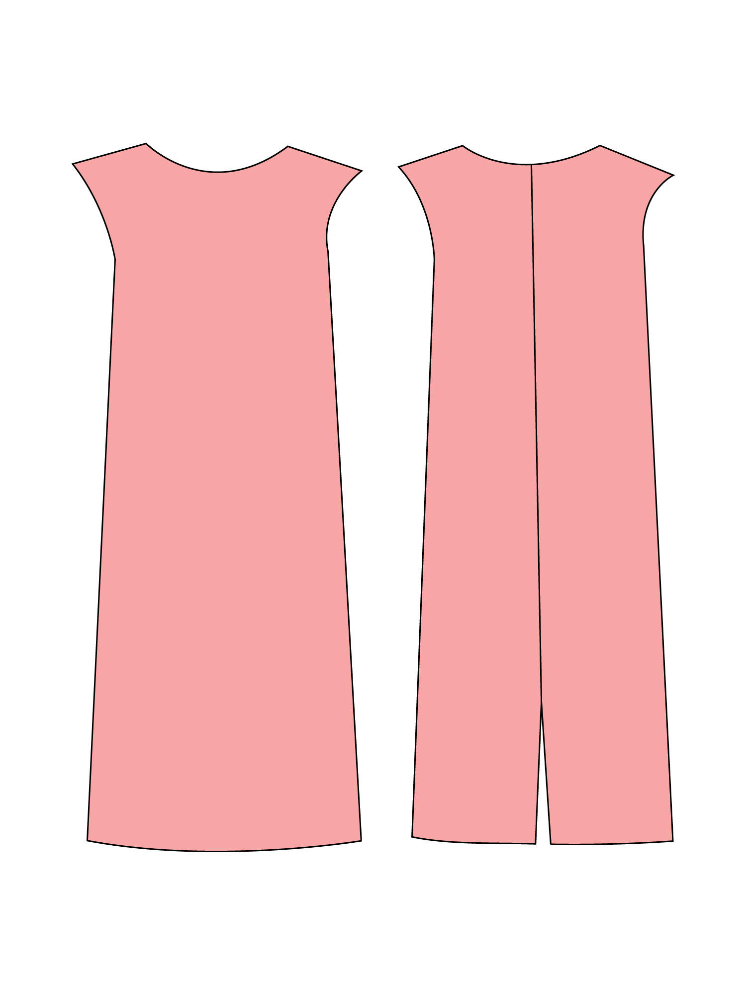 Printable layered pattern for basic maternity dress in women sizes XS, S, M, L, XL or plus sizes 1XL, 2XL, 3XL, 4XL, 5XL to make from light to medium weight woven or knit material with no or low stretch percentage, for example linen, cotton, satin, silk, sequins, lace, velvet etc.