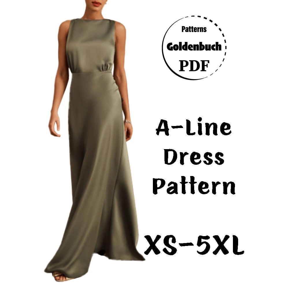 A-Line Dress PDF Sewing Pattern Sleeveless Dress with Loose Fit Bodice and Flared Skirt Wedding Gown