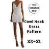 Cowl Neck Mini Dress PDF Sewing Pattern Open Back Wedding Dress Spaghetti Straps Pencil Dress