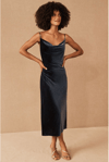 Digital download PDF sewing pattern for cowl neck slip dress in tea length. Sheath dress for bride, bridesmaids, prom, ball, or cocktail party.