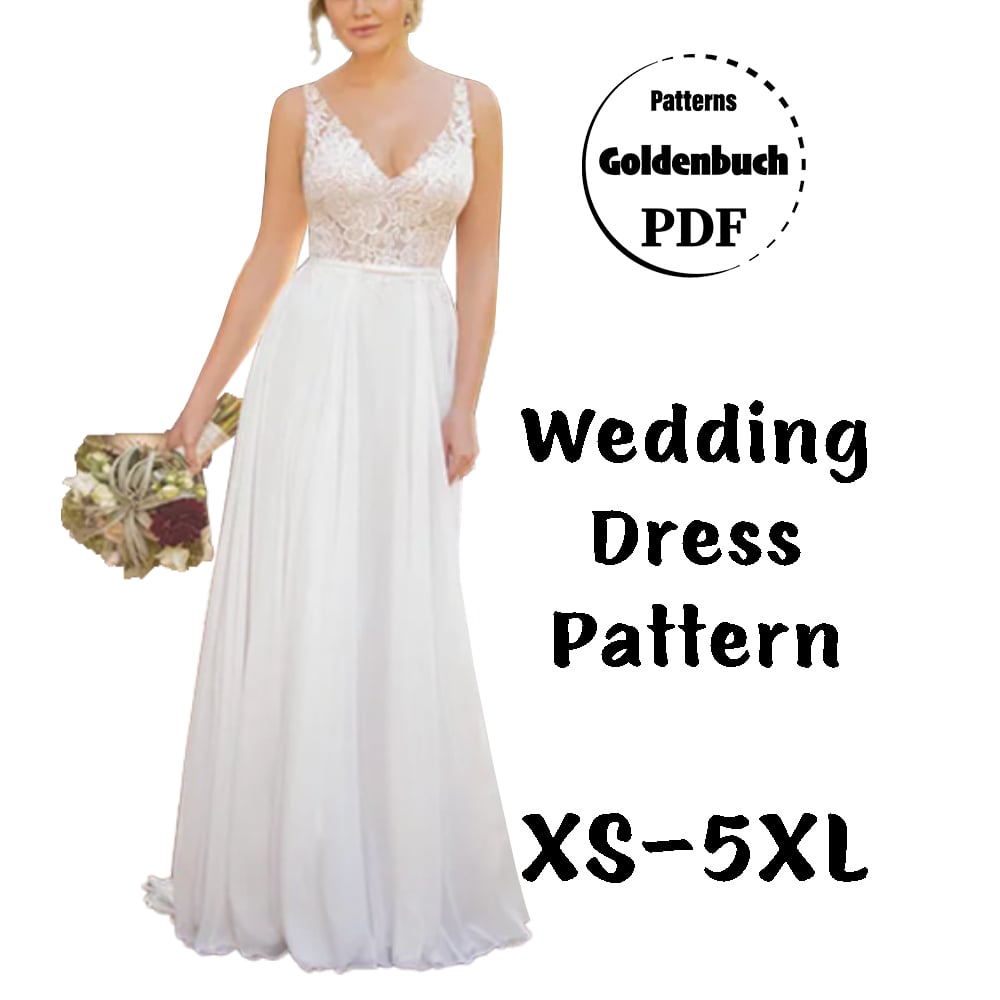 Wedding Dress PDF Sewing Pattern Bridal Gown with Train Plunging Neckline Prom Dress with Low V Back
