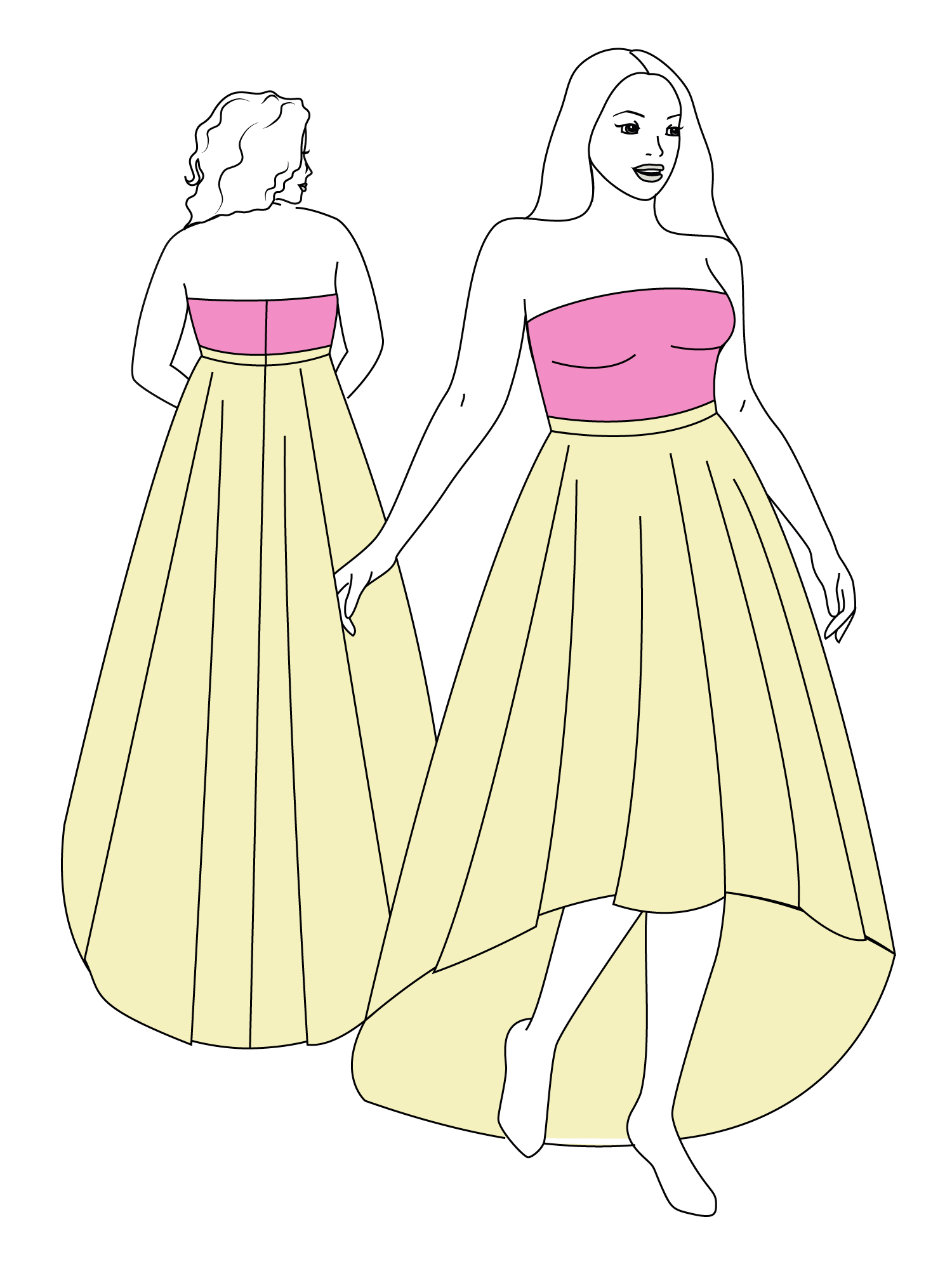 High Low Skirt with Train PDF Sewing Pattern A-Line Wedding Skirt Flared Maxi Skirt for Prom