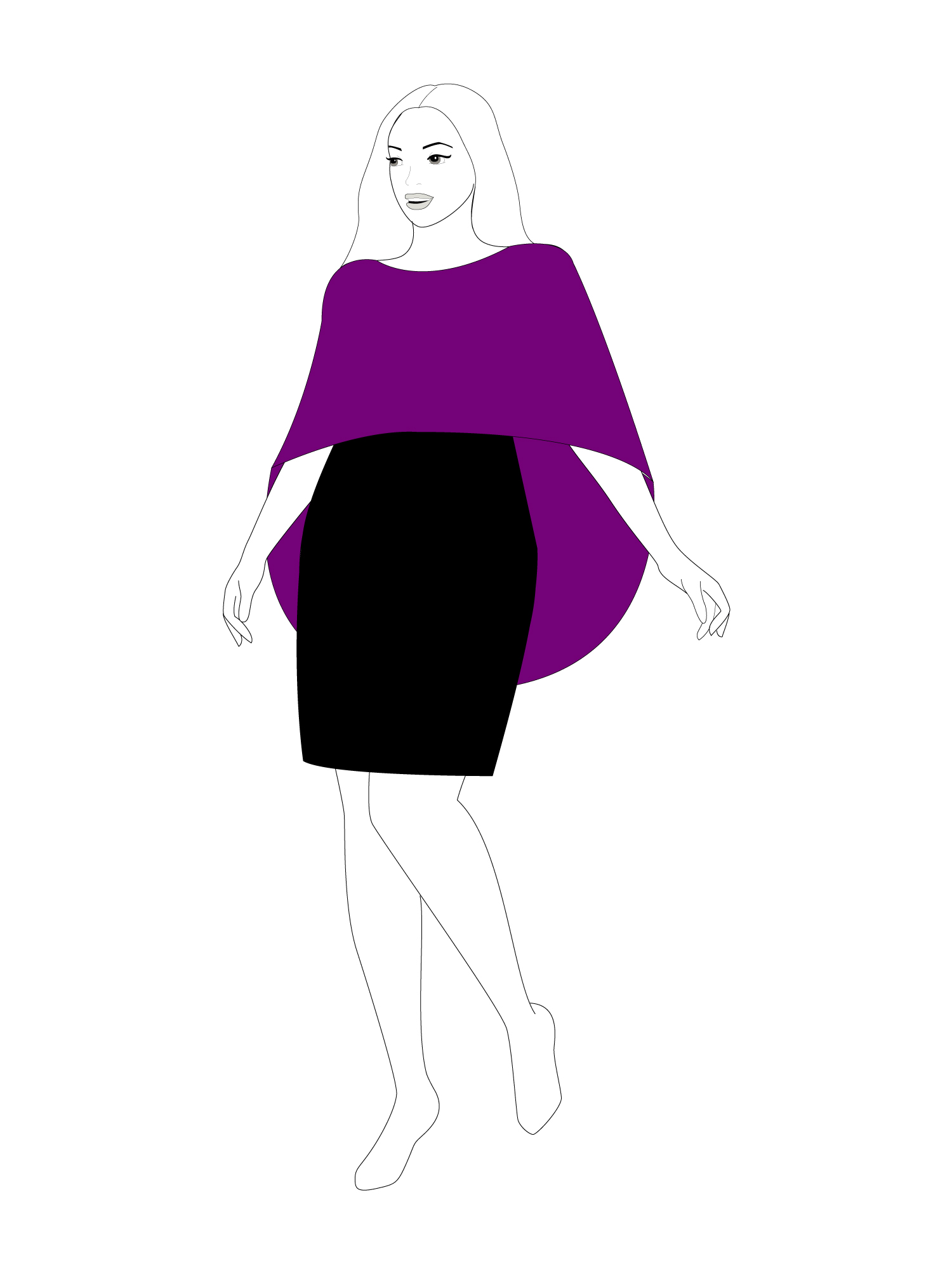 Digital download PDF sewing pattern for high low cape with boat neckline perfect for wedding, formal events, cosplay or performance.