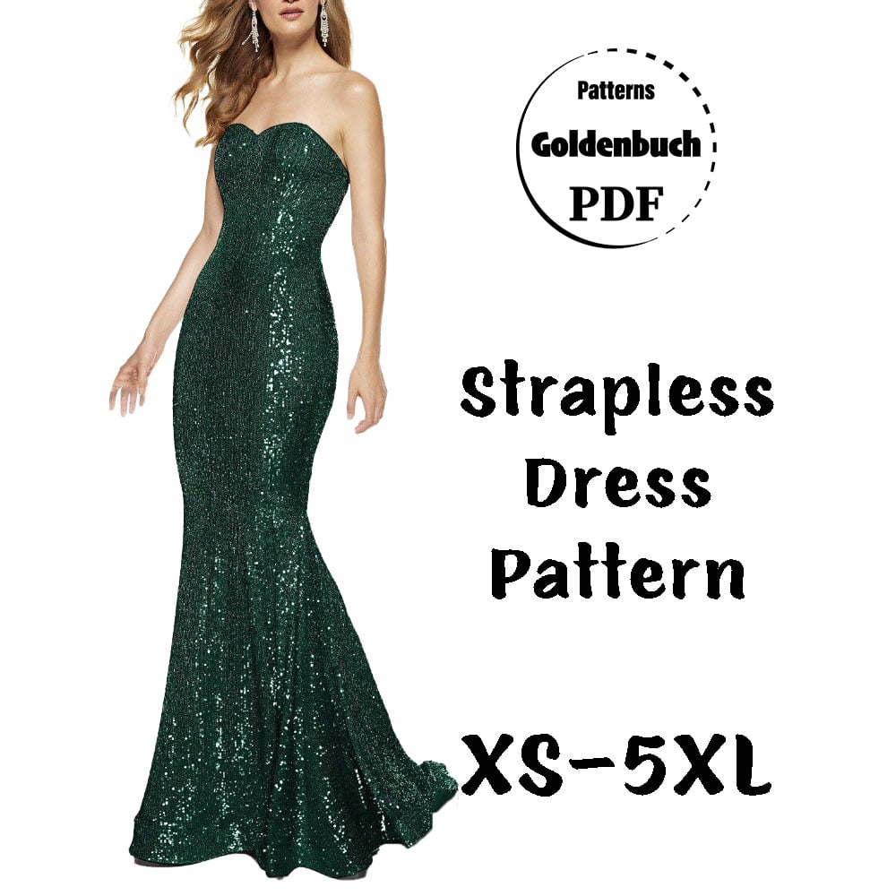 Strapless Mermaid Dress PDF Sewing Pattern Fishtail Prom Gown Bridesmaid Outfit Sheath Wedding Dress