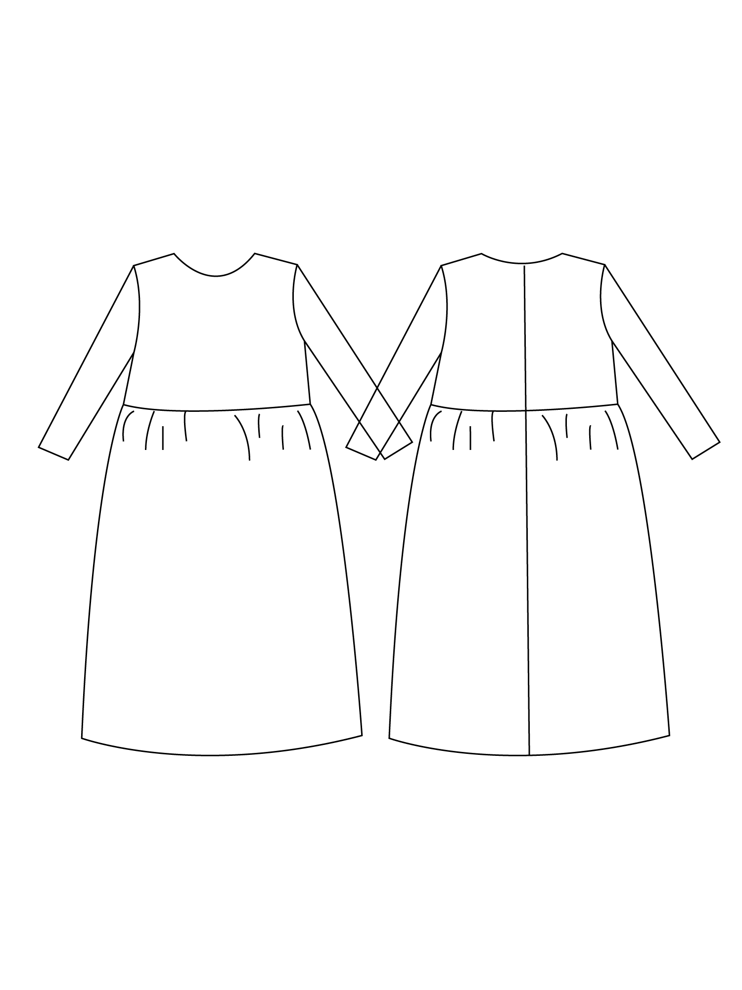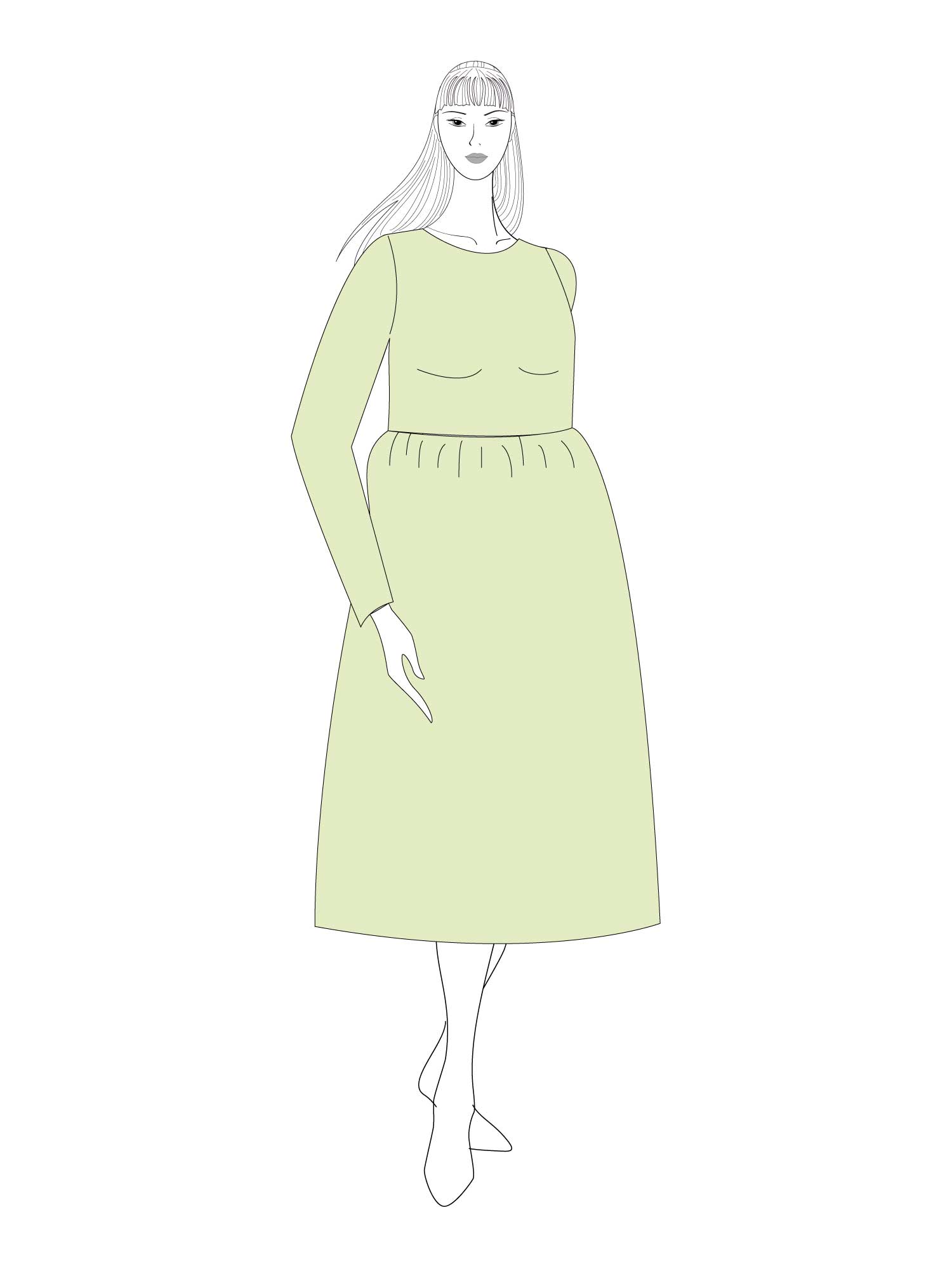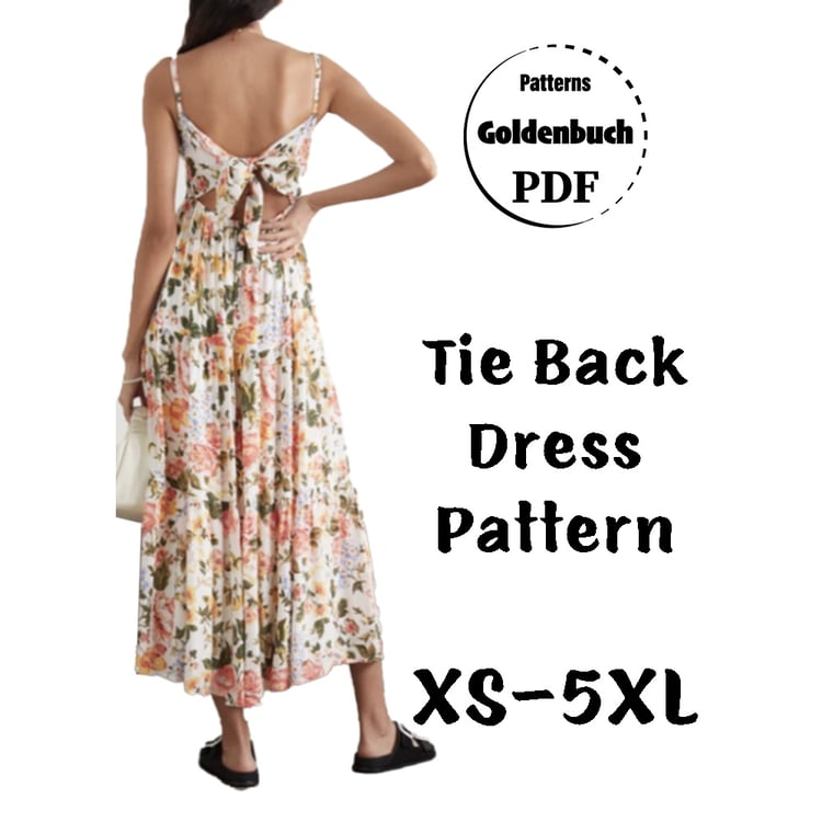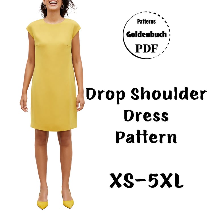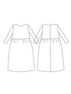 Printable layered pattern for loose fit casual dress in sizes XS, S, M, L, XL or plus sizes 1XL, 2XL, 3XL, 4XL, 5XL to make from light to medium weight woven or knit material with no or low stretch percentage, for example linen, cotton, satin, silk, sequins, lace, velvet etc.