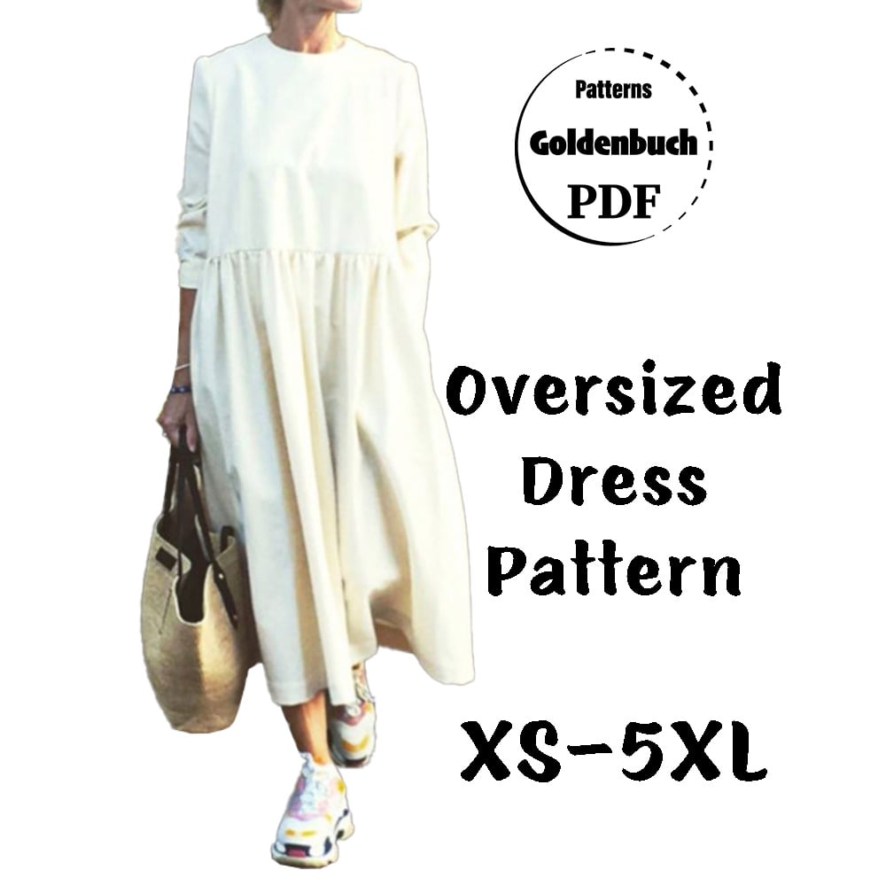 Oversized Dress PDF Sewing Pattern Long Sleeve Kaftan Midi Length Tunic Loose Fit Maternity Dress