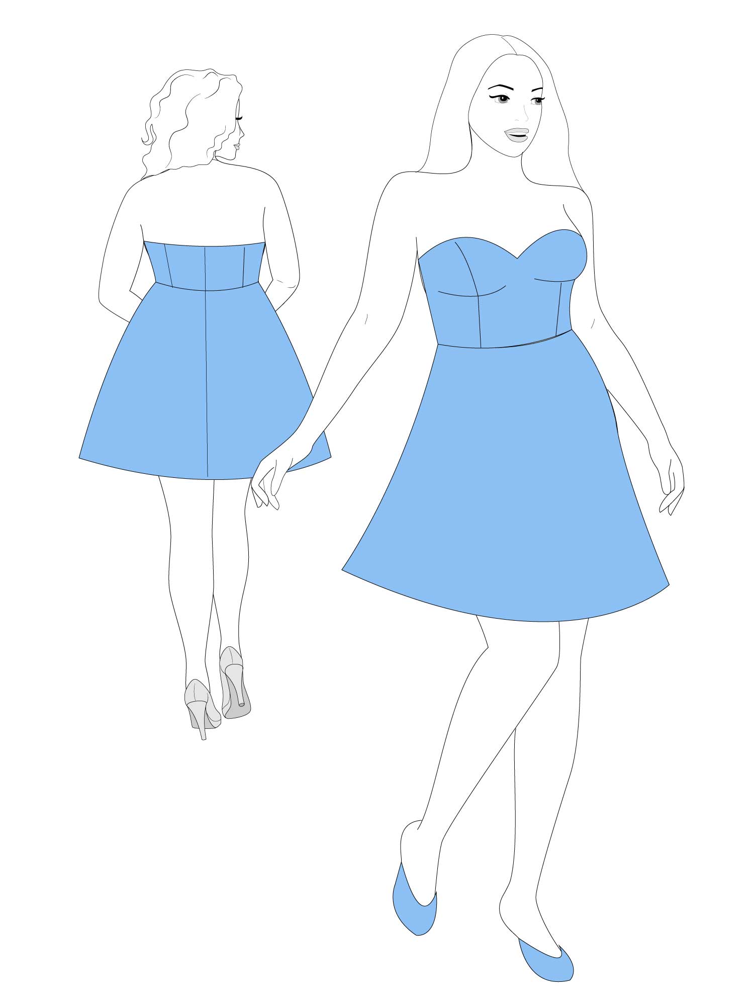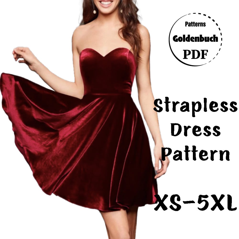 Strapless Dress PDF Sewing Pattern Sweetheart Mini Dress Fit & Flare Women Dress with Circle Skirt