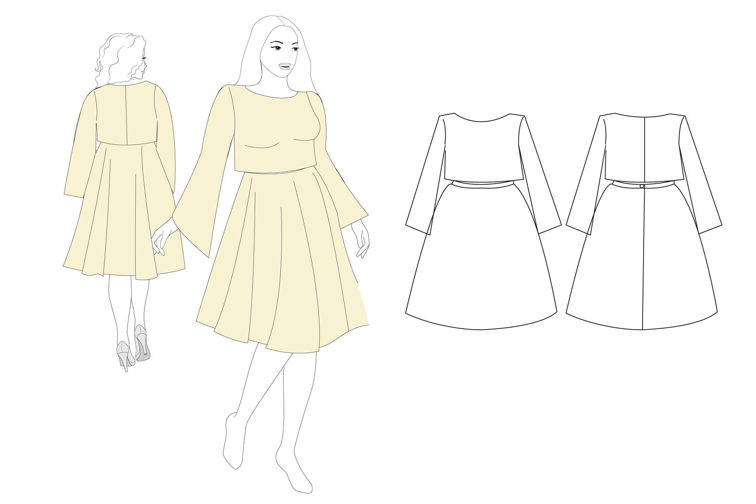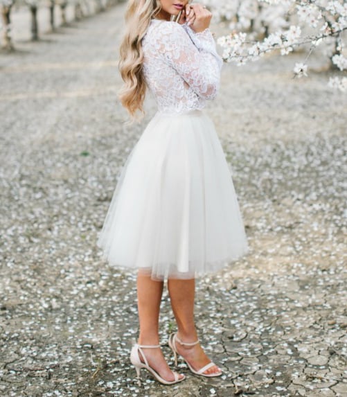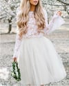 Digital download PDF sewing pattern for 2 piece wedding dress. Circle mini skirt and long sleeve crop top for bride, bridesmaids or prom.