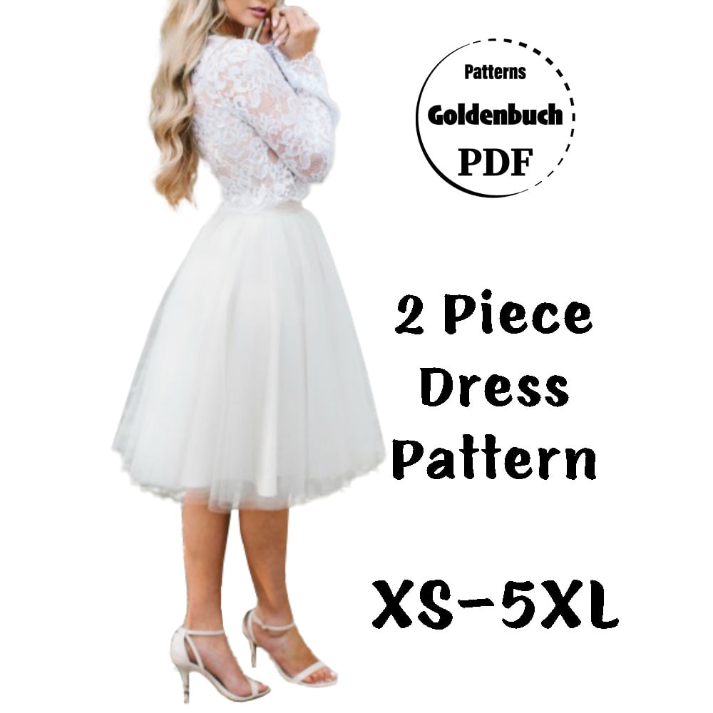 2 Piece Dress PDF Sewing Pattern Long Sleeve Shirt & Adult Tutu Skirt Wedding Mini Skirt & Crop Top