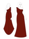 Printable layered pattern for fit and flare evening gown in women sizes XS, S, M, L, XL or plus sizes 1XL, 2XL, 3XL, 4XL, 5XL to make from light to medium weight woven or knit material with no or low stretch percentage, for example satin, silk, chiffon, sequins, lace etc.