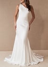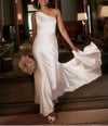 Digital download PDF sewing pattern for one shoulder wedding dress with 16" / 40 cm train. Perfect for bride, bridesmaids, prom, ball, or other formal occasion.