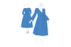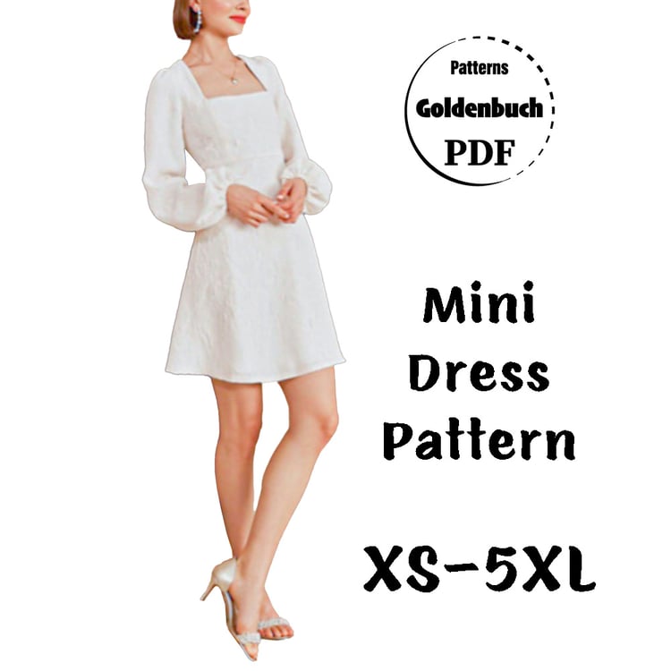 Printable layered pattern for A-line midi dress with fitted bodice and flared skirt in sizes XS, S, M, L, XL or plus sizes 1XL, 2XL, 3XL, 4XL, 5XL to make from light to medium weight woven or knit material with no or low stretch percentage, for example linen, cotton, satin, silk, sequins, lace, velvet etc.