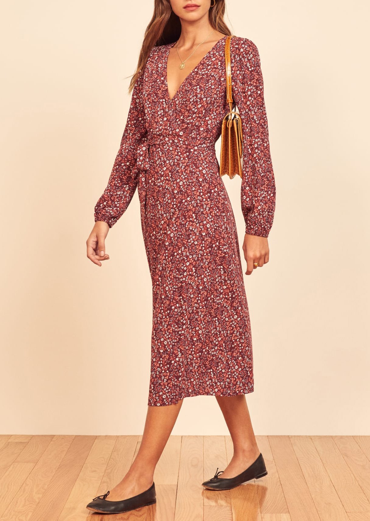 Wrap Dress PDF Sewing Pattern Long Sleeve Dress V-Neckline Midi Dress A-Line Dress for Everyday