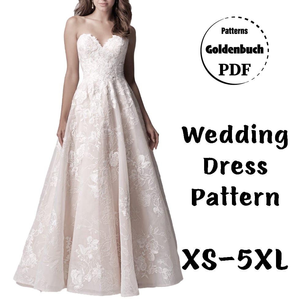 Strapless Wedding Dress PDF Sewing Pattern Sweetheart Bridal Gown with Train Open Shoulders Dress