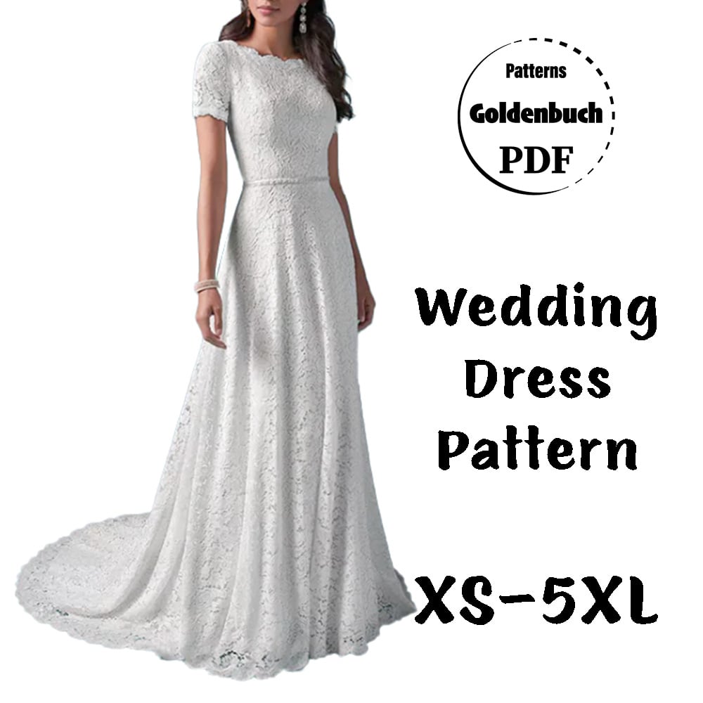Wedding Dress with Train PDF Sewing Pattern Short Sleeve A-Line Bridal Gown Layered Download Pattern