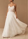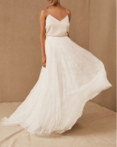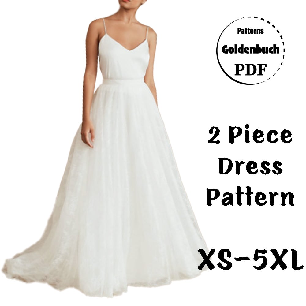 Digital download PDF sewing pattern for 2 piece wedding dress. Full circle maxi skirt with 12"/30cm train and V-neckline cami top with thin straps. You can make straps using ready made satin tape, beaded cord, fringes etc.