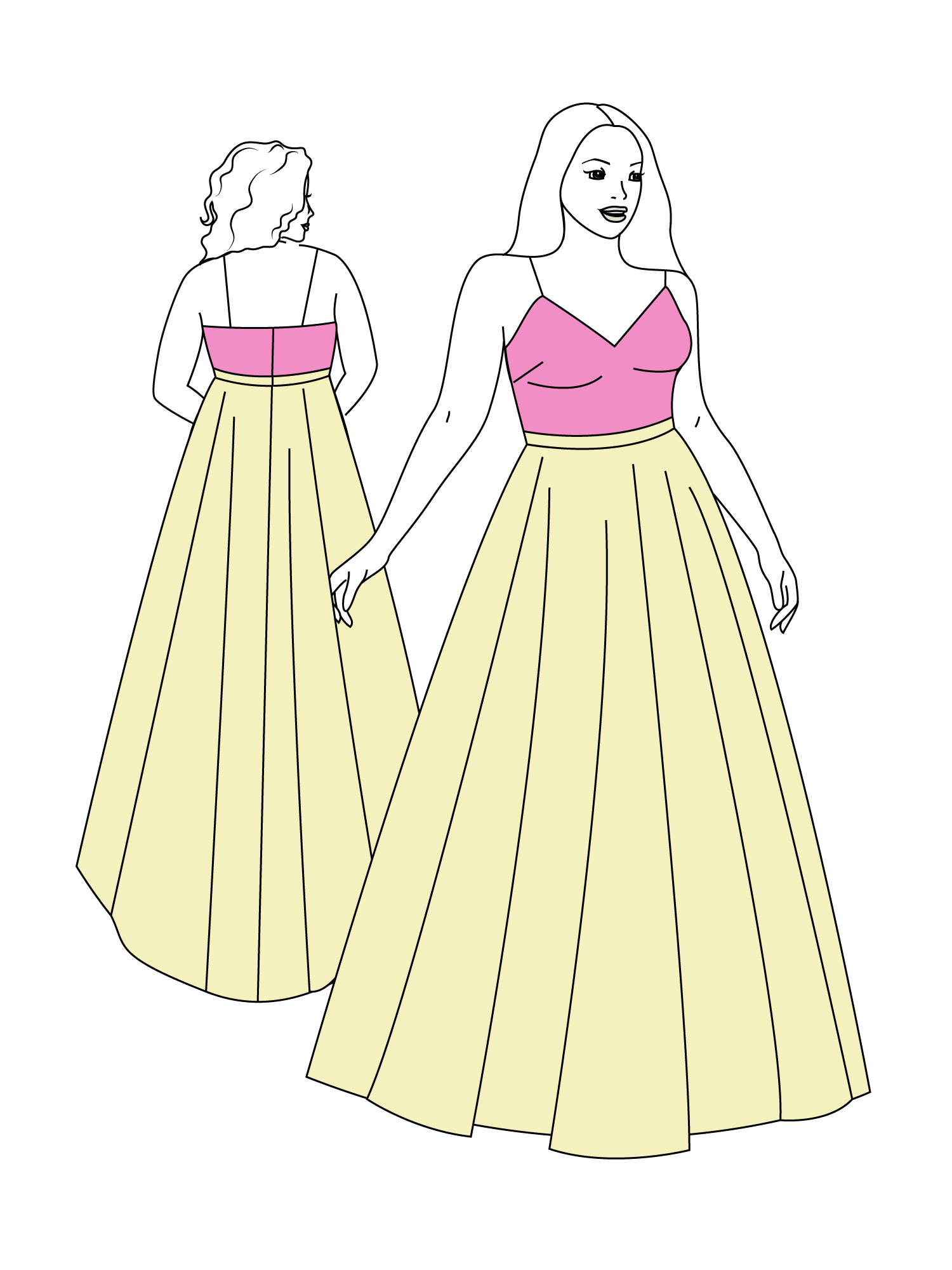 2 Piece Wedding Gown PDF Sewing Pattern Adult Tutu Skirt with Train and V-Neckline Cami Top