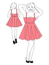 Printable layered pattern for A-line dress with fitted bodice and flared skirt in sizes XS, S, M, L, XL or plus sizes 1XL, 2XL, 3XL, 4XL, 5XL to make from light to medium weight woven or knit material with no or low stretch percentage, for example linen, cotton, satin, silk, sequins, lace, velvet etc.