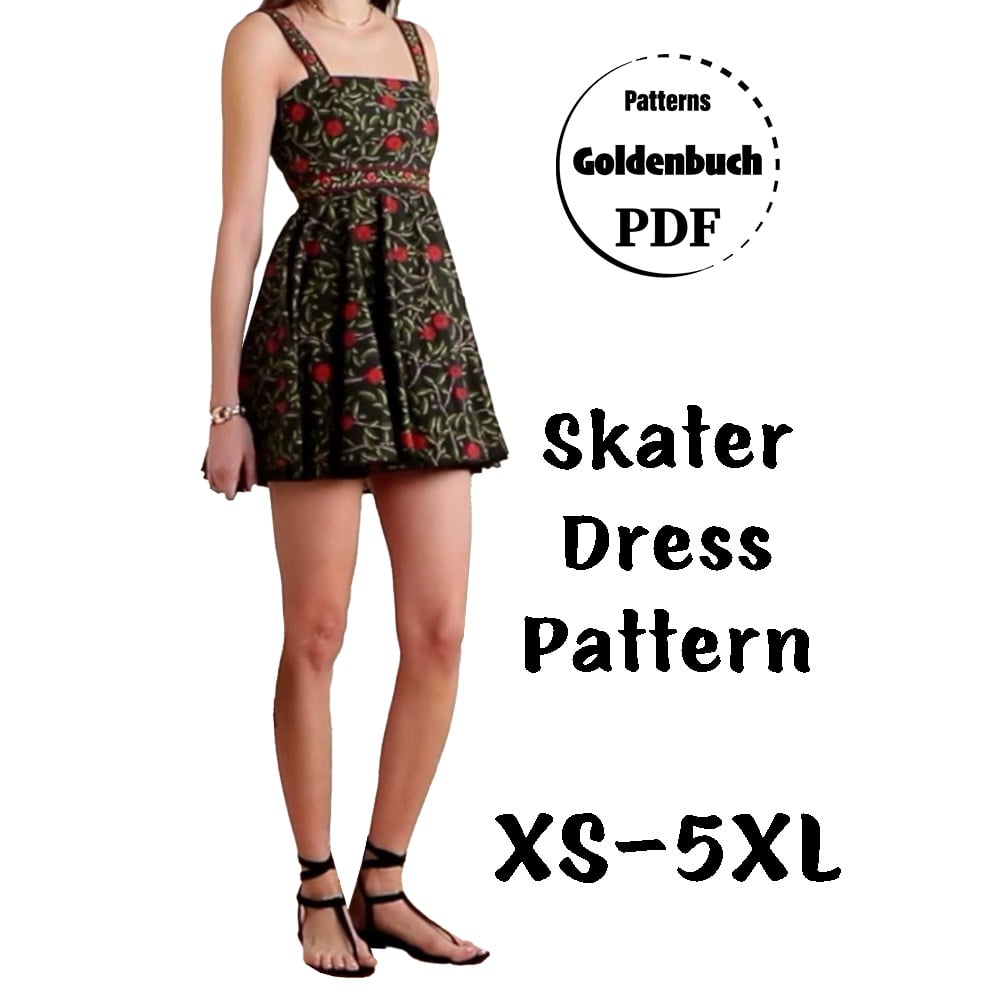 Skater Dress PDF Sewing Pattern Mini Dress Flared Slip Dress with Circle Skirt & Wide Straps