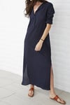 Digital download PDF sewing pattern for long sleeve kaftan dress with buttons and side slits. Women oversized maxi dress or tunic to pair with leggings, tights or skinny jeans.