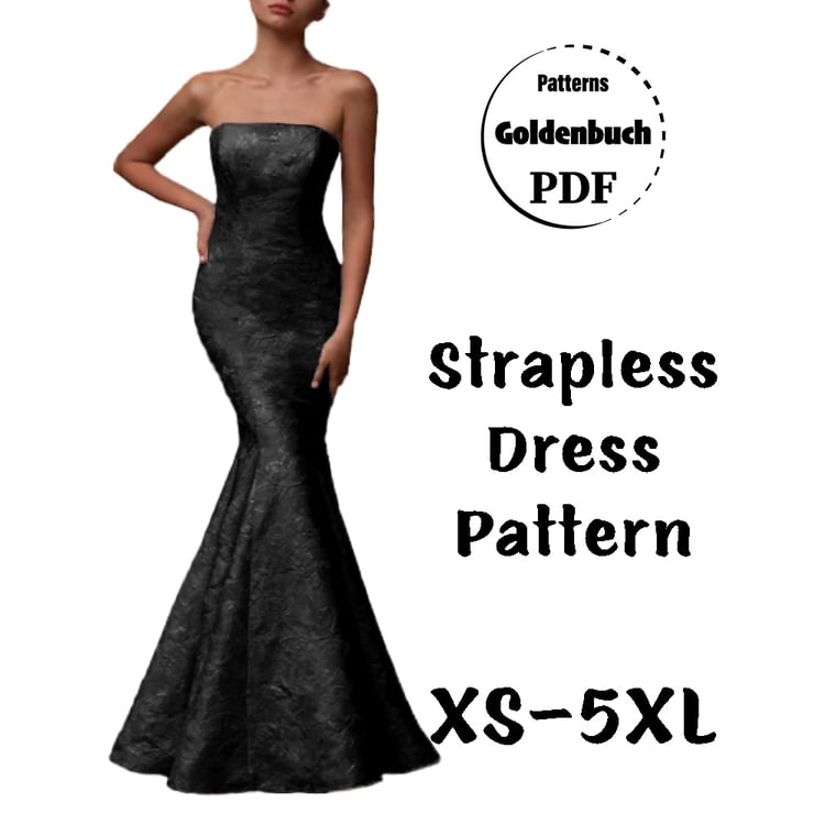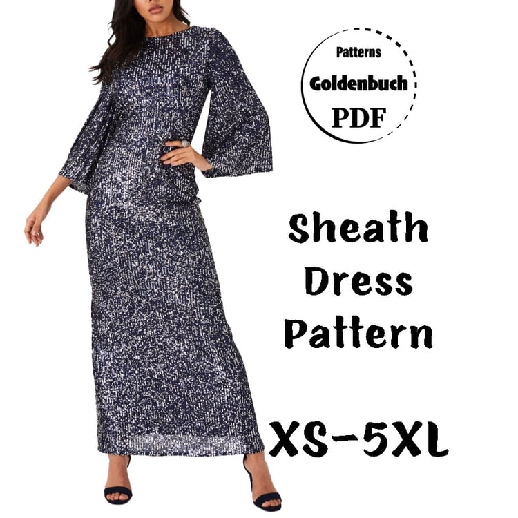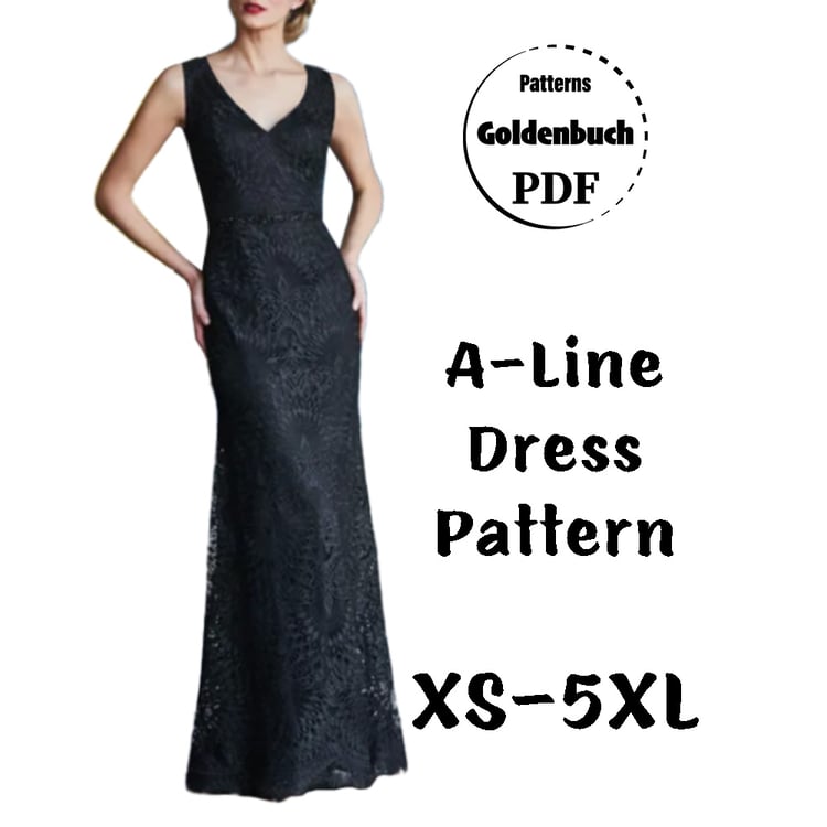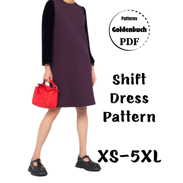 Printable layered pattern for loose fit casual dress in sizes XS, S, M, L, XL or plus sizes 1XL, 2XL, 3XL, 4XL, 5XL to make from light to medium weight woven or knit material with no or low stretch percentage, for example linen, cotton, lace etc.