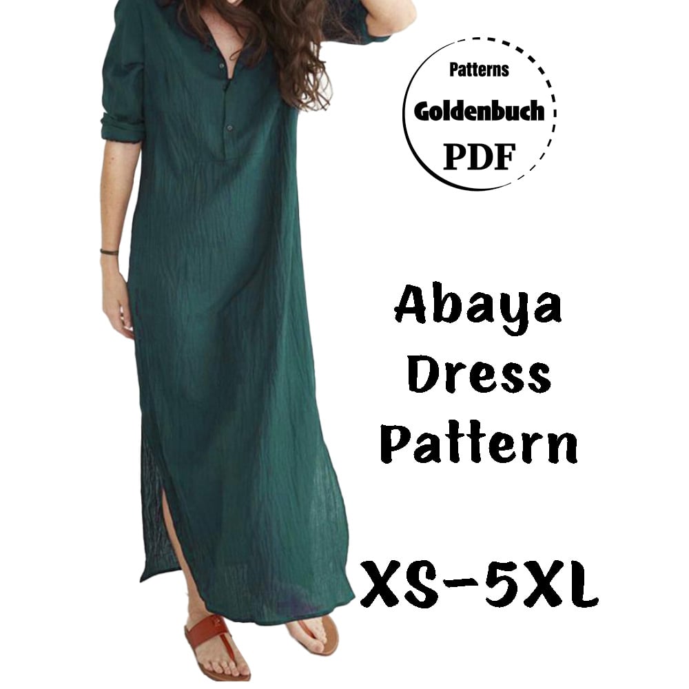 Abaya Maxi Dress PDF Sewing Pattern Long Sleeve Kaftan Oversize Tunic with Side Slits Buttoned Dress